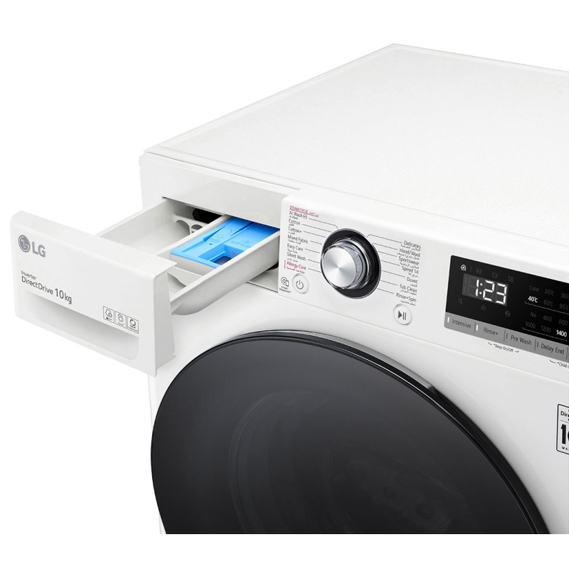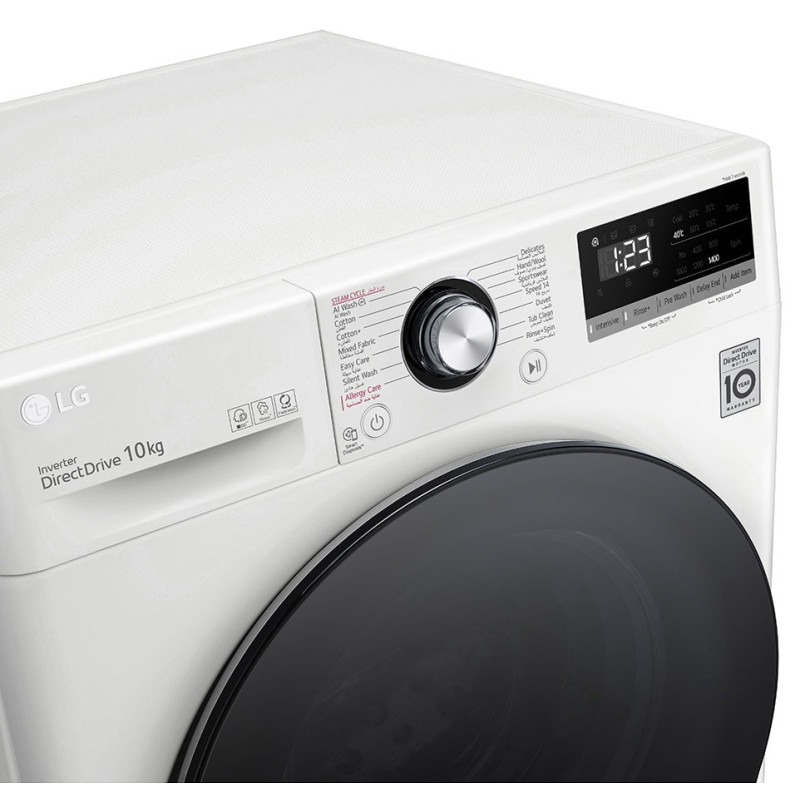 لباسشویی ال جی 10 کیلو سفید مدل F4Y3RYGYWV مجهز به آپشنهای متنوعی است که انعطافپذیری بالایی در استفاده فراهم میکند. قابلیت Add Item امکان اضافه کردن لباس در حین شستشو را فراهم میسازد. Delay End برای زمانبندی شروع یا پایان شستشو بین 3 تا 19 ساعت استفاده میشود. Pre Wash برای لباسهای بسیار کثیف یک مرحله پیششستشو اضافه میکند. قابلیتهای Temp، Spin و Rinse+ امکان تنظیم دستی دما، سرعت چرخش و تعداد دور آبکشی را میدهند. Child Lock برای ایمنی کودکان طراحی شده و با نگهداشتن دکمههای Add Item و Delay End فعال میشود. سیستم Auto Restart در صورت قطعی برق، شستشو را از نقطه قطع ادامه میدهد.