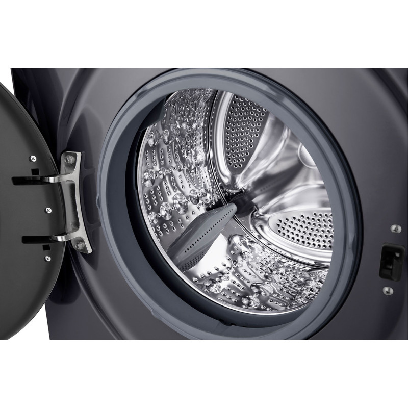 طراحی ماشین لباسشویی دودی ال جی WY1409MVP بسیار خاص است و میتوانید آن را هم به صورت روکار و هم توکار نصب کنید. قابلیت Removable Top Cover این امکان را میدهد که در صورت نیاز به نصب توکار، کاور بالایی را بردارید و دستگاه را زیر کابینت جای دهید. قاب باریک مشکی دور درب و شیشه حرارتدیده (درب فضایی) زیبایی خاصی به دستگاه بخشیده است. دیگ شستشو با طرح برجسته Embossing و پدالهای استیل ضدزنگ، لباسها را به آرامی جابجا میکند و شستشوی بهتری ارائه میدهد. رنگ دودی جذاب این دستگاه نیز با اکثر دکوراسیونهای مدرن هماهنگی دارد.